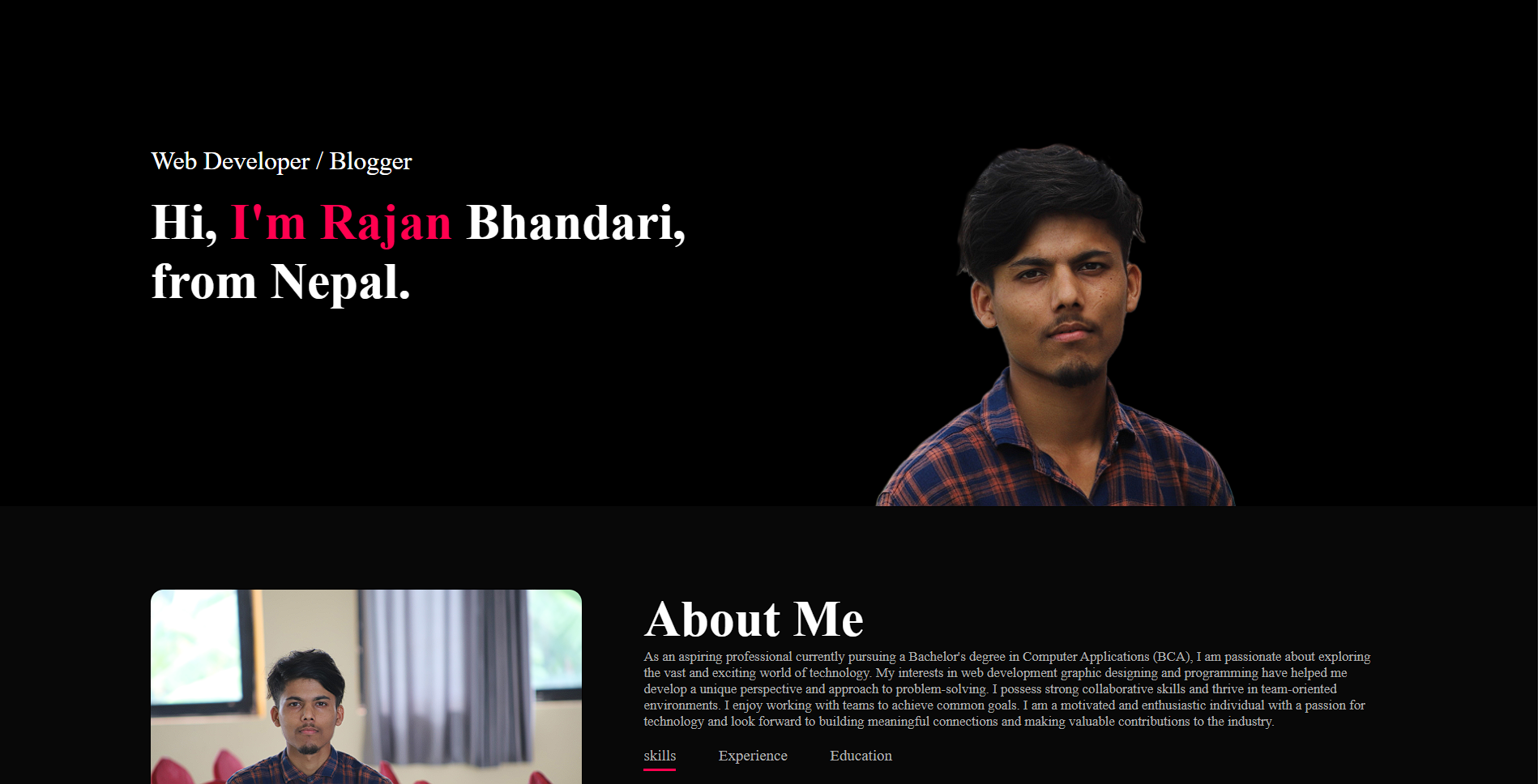 Hi, I’m Rajan Bhandari, Full Stack Developer and content Writer from Dang, Nepal. With a solid background in full-stack development basically in MERN Stack. I love building digital experiences that are not only functional but also optimized for visibility and performance. Currently, I’m exploring exploring different frameworks in development, diving deeper into SEO strategies, and enhancing my design skills. I enjoy combining creativity with code to build websites that leave an impact.